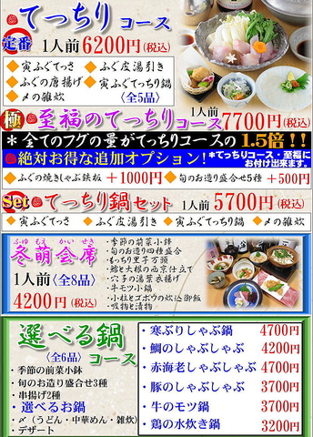 『冬萌会席』『てっちりコース』『選べるお鍋のコース』をご用意いたしました。