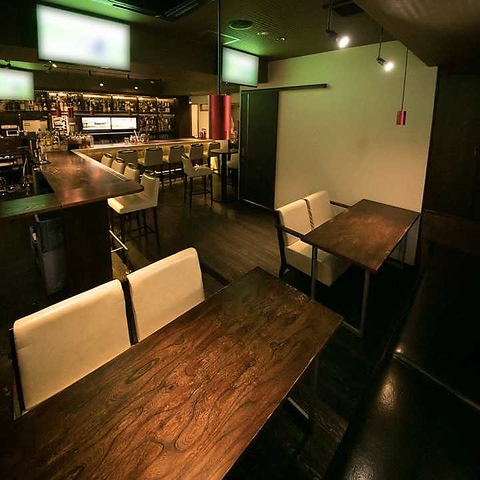 都会の喧騒から一歩足を踏み入れれば、そこは温かみのある照明が灯る大人の隠れ家。ウッド調で統一された店内は、心地よい落ち着きに包まれています。ゆったりとしたソファ席で寛ぎながら、静かに会話を楽しんだり、一人で物思いに耽ったりと、思い思いの時間を過ごせます。デートや特別な日にも最適な、心安らぐ空間です。