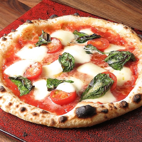 水牛のモッツァレラと甘いフルーツトマト、香川県産バジルを使用したマルゲリータ。イタリアで定められている水牛のモッツァレラを使ったマルゲリータは「D.O.C」と名前を付けることができます。味わい深いモッツァレラとトマトの酸味、風味のあるバジルは相性バッチリ。焼き立てのピッツァをお楽しみください。