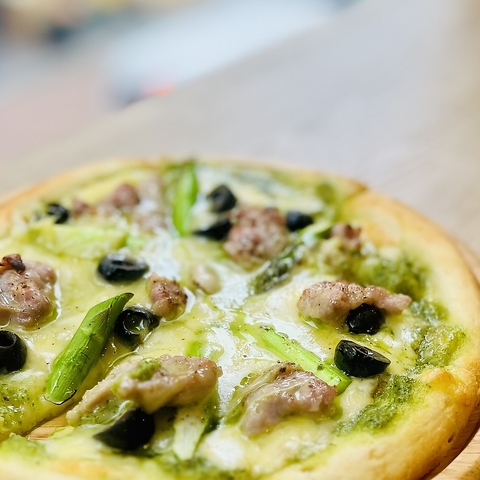 るみなすキッチンイチオシの「しらすと有馬山椒のピザ」!こちらはるみなすキッチンオリジナルのピザとなっており、茗荷のアクセントが決め手のピザとなっております。耳はカリカリ、チーズがとろ~り、山椒のピリッと感がクセになる一品。+200円でチーズ1.5倍増量も可能★
