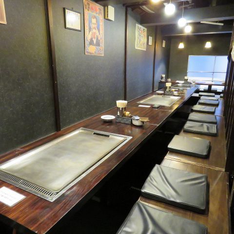 目の前でプロが仕上げる、臨場感あふれるカウンター席。仕事帰りやサク飲み等にも是非お立ち寄りくださいませ。鉄板焼き屋の定番メニューから一品料理まで多数ご用意がございますので、お気軽に「おすすめは?」なとお尋ねください!◎カウンター席の他にも、落ち着いた掘りごたつ個室席もご用意がございますので、ご予約はお早めに!