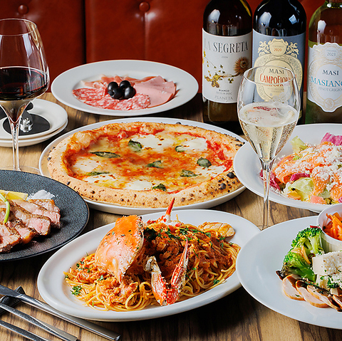 120分飲み放題付でコスパ◎創業20年を超えてなお歴代人気NO.1を誇る『渡り蟹のトマトソース』や、北海道産豚肉のお肉料理もついたミア・アンジェラおすすめコース!