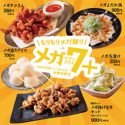やきとりスタンダード 中野店限定!人気のメガ盛り7品にさらに5品が追加!