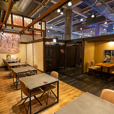 囲炉裏を囲ったテーブル席やお洒落なカウンター席などもございますので、1名様~少人数でもお気軽にご利用いただけます。お仕事帰りの一杯や飲み会、デートにおすすめ♪店内は感染症対策として24時間換気中。ソーシャルディスタンスの確保やスタッフのマスク着用、頻繁な手洗いなどを徹底してご来店をお待ちしております!
