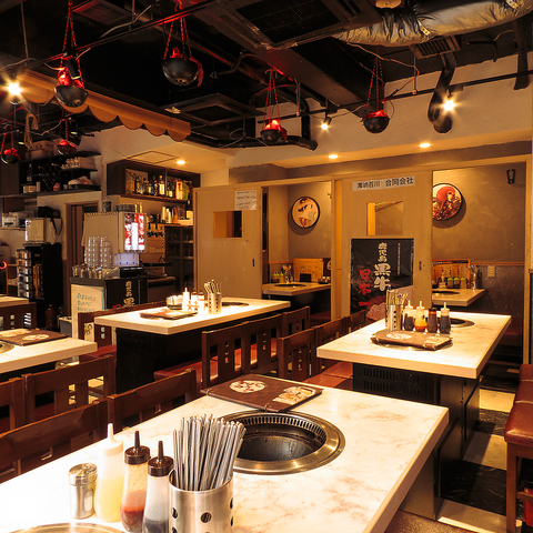 アットホームで落ち着く店内は、25名様~最大45名様までの貸切OK!!会社宴会やイベント打上げ、仲間達との飲み会など様々なシーンでご利用ください♪女子会やカップルにもおすすめ出来る清潔感溢れる店内☆洗練され落ち着いた雰囲気が自慢。少人数から中人数での焼肉宴会もお楽しみいただけます。ぜひご利用ください!
