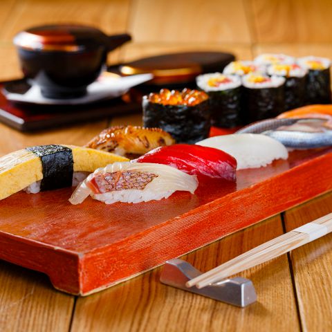 にぎりと巻物、お椀がついたお得なセットはぜひランチタイムに!新鮮ネタで多彩な握り寿司を、ぜひご堪能!