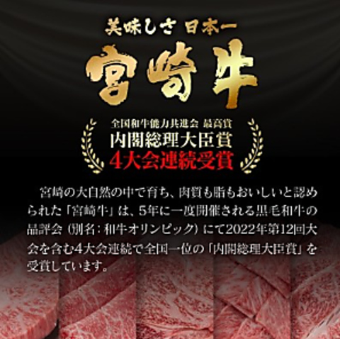 国内屈指の黒毛和牛の産地宮崎県。その中でも最上級のものだけが「宮崎牛」の名前を許され、その豊潤で奥深い味わいは、国内外で最高の評価を得ています。ぜひ最上級のブランド牛をご堪能くださいませ!