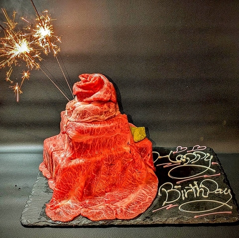 誕生日や記念日、各種お祝いに“お肉のケーキ”でサプライズを!ご予算に合わせて内容調整も可能です。演出のご相談もお気軽にどうぞ。