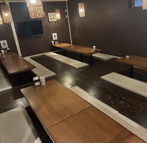 お座敷は掘りごたつ完備で足元ゆったり◎長時間のご利用にもオススメです☆大型宴会可能なお店をお探しの際は、福生の「海鮮と串焼き まとい水産」まで★皆様のお越しを心よりお待ちしております!