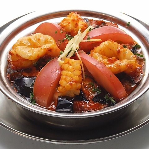 海老・イカ・貝・茄子のドライカレー