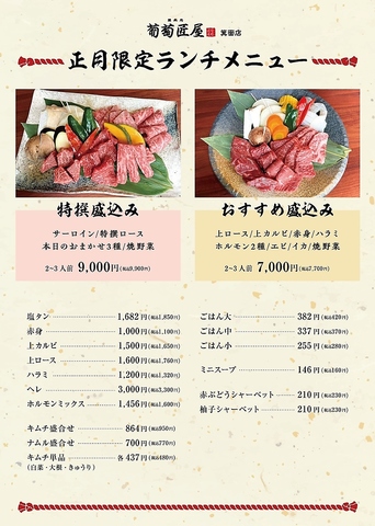 焼肉処 葡萄匠屋 箕面本店 ランチ 2025/12/15 更新