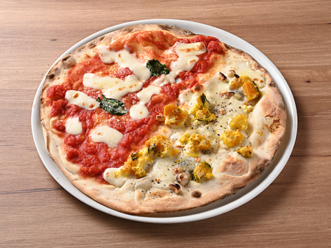 ご注文頂いてから1つ1つ生地をのばして手作りするピッツァ。フレッシュトマトや生地とマッチする味わいのチーズを並べて、丁寧な焼き技で仕上げたアッツアツのこだわりピッツァをぜひご堪能ください!ご家族でのランチ・おしゃれな女子会・デートにも人気です◎ ※画像は系列店です。