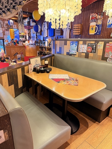遊び心溢れる広々店内は幅広い年齢層に人気です♪ 子供達と一緒にお食事にも◎記念日にお祝いするのも◎気の合う仲間同士で語り合うにも◎ふらっと1人飲みにも◎模合、女子会、打ち上げなど各種宴会の対応も可能!アットホームなスタッフが出迎えてくれます♪
