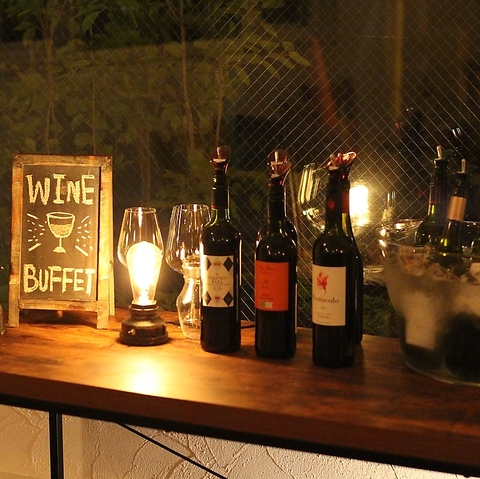 | 【ワイン16種類追加オプション】 | おひとり様プラス800円(税込)。スパークリングワイン2種類、赤ワイン5種類、白ワイン5種類、moncozy特製サングリア4種類が全て飲み放題となります。 |
