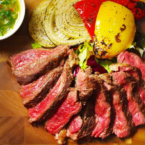 鉄板ビストロの真打ち「牛ステーキ」を食べる直前に煙の中へ!そのままでの十分に美味しい赤身ステーキを、お客様の目の前で瞬間燻製に!薫り高い煙の中で、瞬間的に美味しさを凝縮されたステーキは癖になるおいしさ!しっかり食べたい方には1ポンドがおすすめ♪