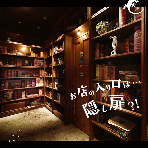 まずは入り口で驚くこと間違いなし!本棚?石膏像??お店に入るのにもちょっとした仕掛けがあって、入店からテンション上がります★大人がワクワクできるとっておきの遊び場へようこそ♪