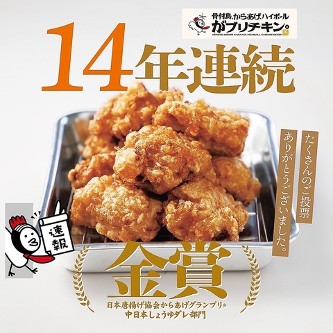 秘伝のしょう油ダレが決め手で、からあげグランプリ中日本しょう油ダレ部門で14年連続金賞を獲得中!