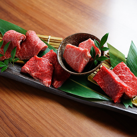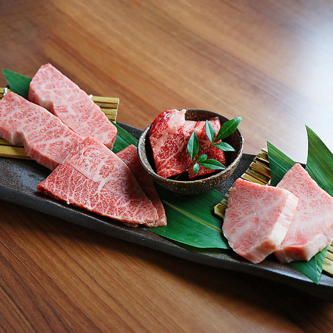 佐渡牛入り黒毛和牛が赤身と霜降りの部位ごとに食べ比べできる人気の盛り合わせは注文必須!!!焼NIQのお肉は店主のこだわりが詰まってます!お客様にいつ来店されても満足されたい…という想いを込めて週替わりで上質なお肉をご提供しております。