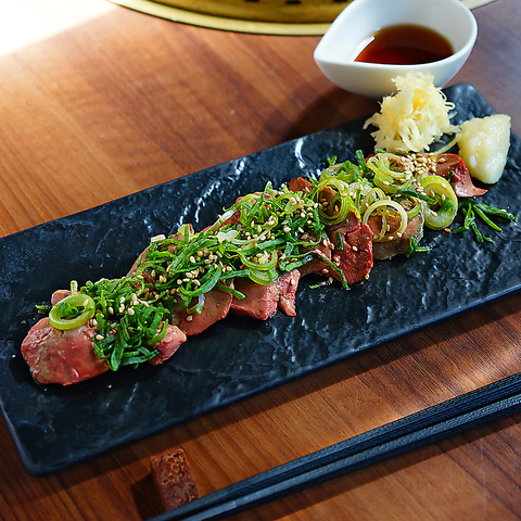 「お肉は幸せの食べ物。」生肉LOVERのアナタの為に、焼NIQならではの美食メニューをご用意しております!佐渡牛のツラミ刺し(写真)・ユッケ、馬刺し、生肉握りetc…自慢の取り揃え!迷った時はお気軽にスタッフまでお声かけください♪