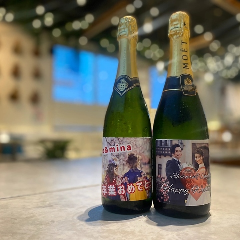 記念日や祝い事などにはリーズナブルに利用できるシャンパンタワーがオススメ☆シャンパンタワー付きコースが5500円は絶対お得!もちろん単体でのオーダーもOKです!シャンパン3本&タワー利用が基本セットとなります☆大画面プロジェクターにお好みの映像を流しての演出もできます♪