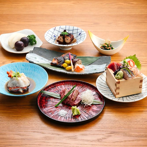 季節の旬の食材を使用したお任せコースとなっております。刺身は博多漁港に水揚げされる鮮魚を中心に、長浜鮮魚市場から新鮮な地魚を仕入れています。そのほかにも小鉢からご飯ものまで一品ずつ拘り抜いたお料理をご用意いたしております。また、お料理の内容やご予算のご相談などはお気軽にご相談ください。