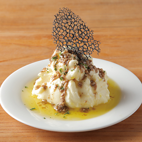 ホクホクのポテトサラダにたっぷりのアンチョビソースをかけた人気の一品