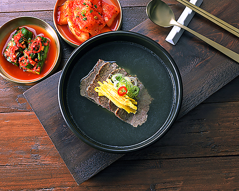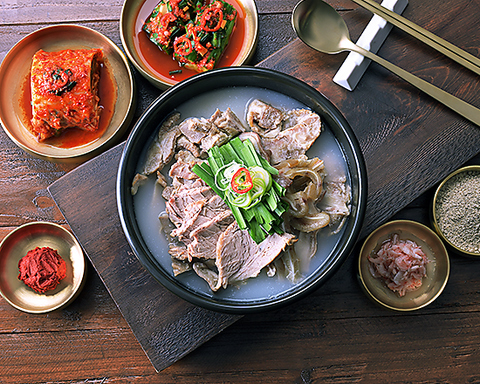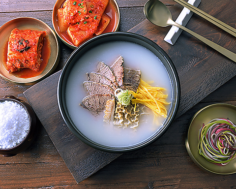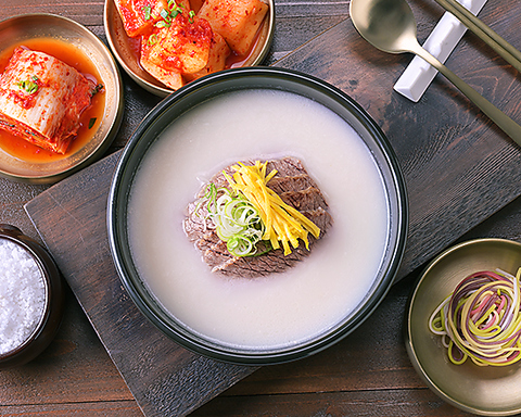スープの色や味を調えるための添加物や科学調味料は一切使用しておりません。ソルロンタン本来の深い味わいを大切に大事なご家族にお届けする気持ちでご用意しております。お客様の健康と滋養のため、真心を込めて作っております。毎日お召し上がりいただいても、決して負担とならないスープです。お好みに応じて、テーブルの塩、胡椒、キムチ、カクテキで味を調えて、より一層美味しくお召し上がり下さい。