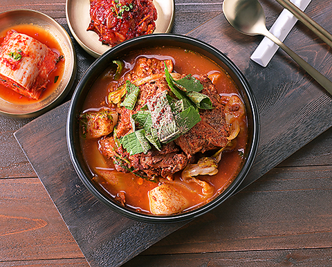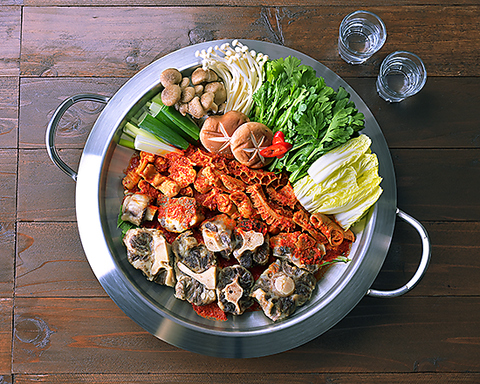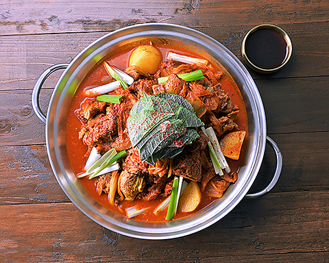 ジャガイモと骨付き肉を煮込んだ韓国で有名な鍋料理 お肉のコクと野菜の甘みが混ざり、程よい辛さが特徴の鍋です※2~3人前
