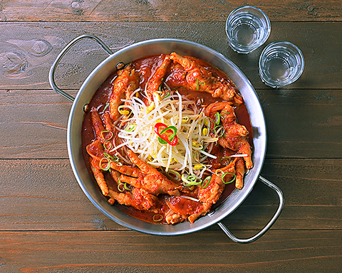 【ガツンとくる辛さがお望みなら】鶏の足を唐辛子やコチュジャンで味付けをしたピリ辛おつまみ プルプルとした食感でコラーゲン豊富、お酒と相性抜群です※2~3人前