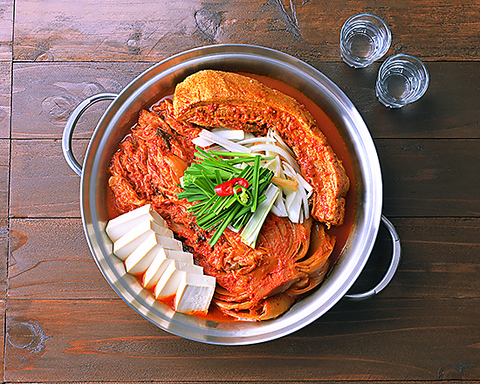 【辛旨のバランスがやみつきに・・・】豚バラ肉と熟成キムチを蒸し煮にした鍋料理 豚肉の旨みとキムチの酸味のハーモニーが特徴です※2~3人前