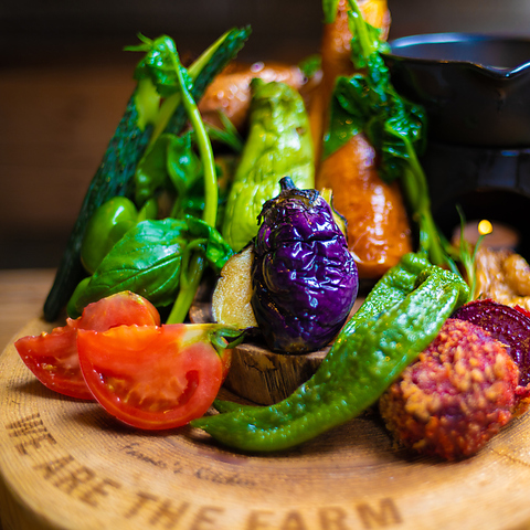 自家農園から直送された朝採れのお野菜を目一杯お召し上がりになれるメニューです。季節によってお野菜の内容が変わるのもお楽しみください。色とりどりのお野菜が並んで写真映えも抜群♪かつヘルシーで女子に大人気のメニューとなっております◎女子会やデート、お一人様ももちろんご利用ください♪