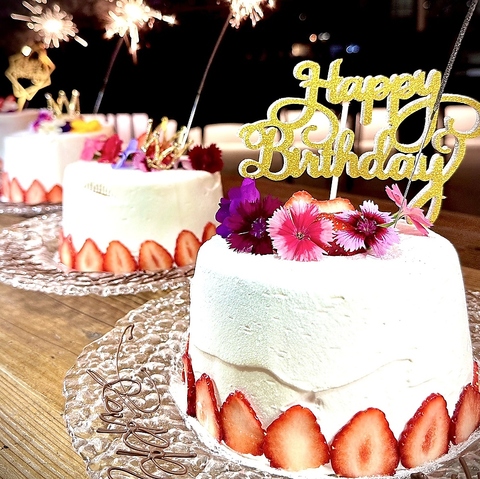 コースご利用の方は誕生日や記念日のサプライズに特製ホールケーキを半額でご提供
