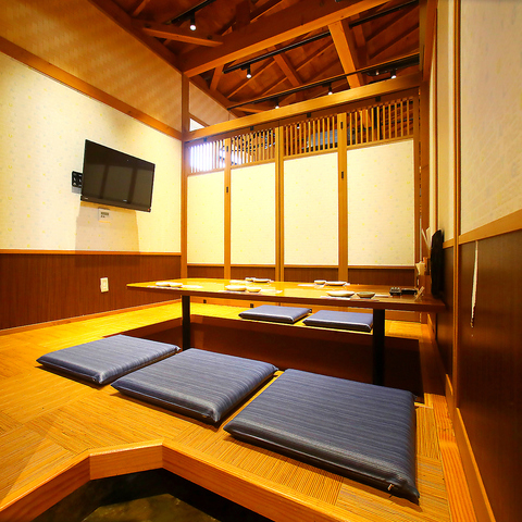 店内はゆったり落ち着く和の空間。のんびりくつろいでお過ごしいただける掘りごたつのお席が人気です◎人数に合わせたお部屋をご案内させていただきます♪特に、TV付個室は、人気のお部屋ですので、ご予約はお早めに…