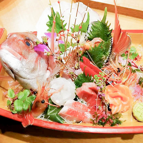 季節のお刺身、キンキ、ウニ、中トロ、白身、貝類など、豪華お刺身を階段盛り合わせでご提供します!ホットペッパーのポイントもご利用いただけます。