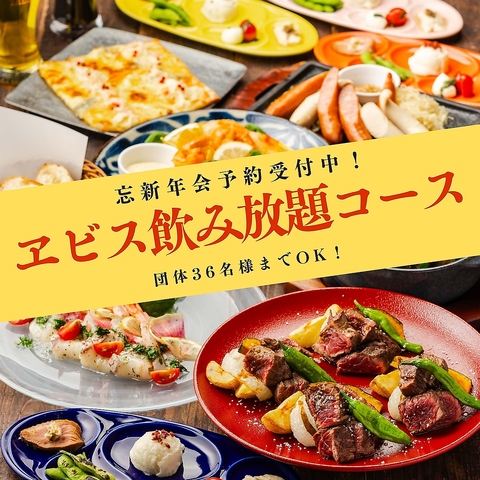 ヱビスビールも飲み放題で楽しめる90分or120分飲み放題付コースをご用意!一次会やゼロ次会・二次会にもOK!