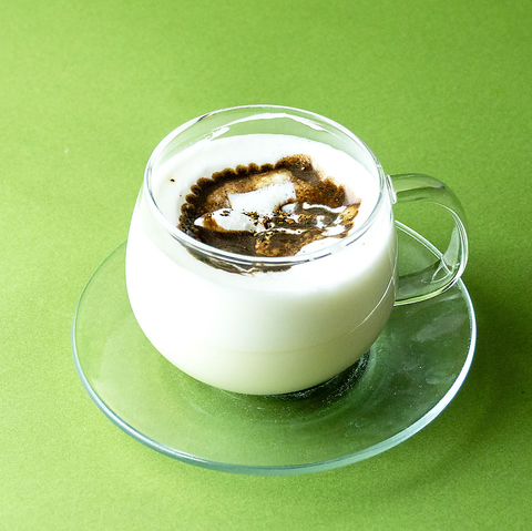 ほうじ茶入りのホットミルクに、お好みでオリジナル濃厚ほうじ茶ソースをかけてお楽しみください!