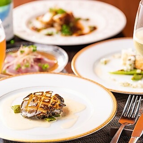 昼は2340円から(税込み)夜は8800円から(税込)のコースご用意致しております。夜は極上素材を用いたアラカルトも充実しています。特にステーキがメインも、湘南や長崎からの極上の鮮魚を使った魚料理も充実していて、単なるステーキハウスとは一線を画したメニュー構成が魅力的ですね。