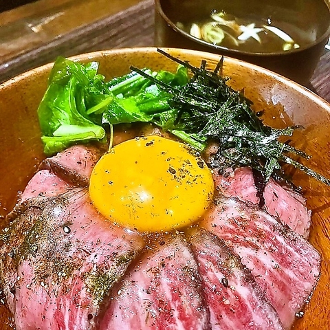 京都産食材を使用したローストビーフ丼やステーキ丼がおすすめ!味のバリエーションも多数ご用意。お野菜もドリンクも調味料も、京都産にこだわっています◎会社帰りの一杯や観光・出張のお客様も是非お越しください。