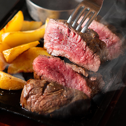 厳選した赤身肉をミディアムレアに焼き上げた厚切りステーキ。甘めに仕上げた自家製ステーキソースが相性抜群です。