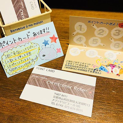 当店にはポイントカードがあります!ご利用金額に関わらず、1回のご来店で1ポイント、10ポイントでご飲食代から500円割引きさせていただきます。まだお持ちでない方は是非お声がけください。