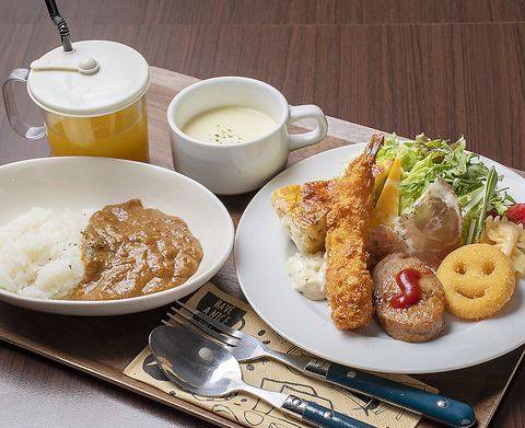 ドリンク付きです。※メインを1品選べます(オムライス/ミートソースパスタ/カレーライス/トマトソースパスタ/ふりかけごはん)