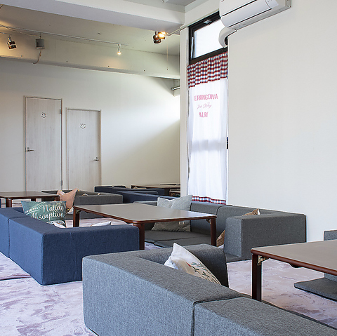 オムツ交換台や授乳スペースも完備しております。小上がりソファー席でのお子様連れのママ会等貸切利用にすることも可能です。ぜひご利用ください。