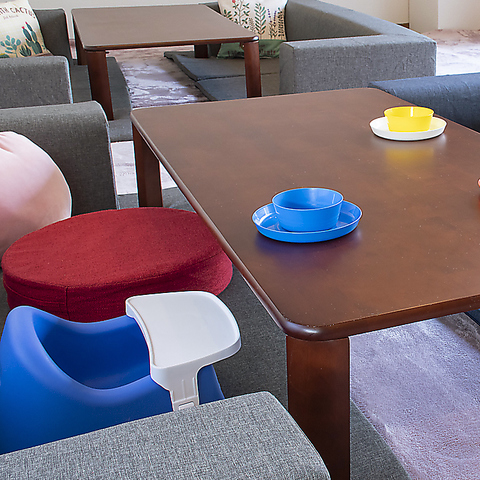 お子様椅子やお子様用食器類も豊富にご用意。授乳スペースやオムツ交換台も完備しておりますので子育て中のママさんもご安心下さい。