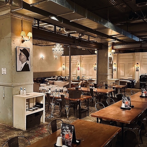【パーティーやイベントなど貸切利用も可能!開放的なテーブル席】広々空間で自由度の高いオリジナリティあふれるパーティが開催可能です。プロジェクター・スクリーンや音響設備,照明設備などをご用意しており、各種パーティーやイベントでご利用いただけます。