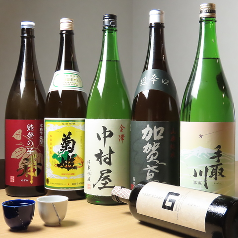 当店では厳選した地酒をご用意しております。美味しい料理には美味しいお酒…金沢を堪能してください。