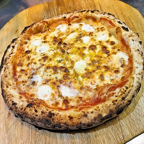 500℃の高温石窯で焼き上げる自家製ピザ!米粉を独自配合したヘルシーな自家製生地を更に熟成。パリパリもちもち食感を是非体感してくださいッ!
