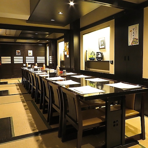 周りを気にせず、気の合う仲間とじっくり語らうなら、やっぱり個室!畳の温もりと落ち着いた照明に包まれた空間で、足を伸ばしてくつろぎながら、豊富なメニューをご堪能ください。