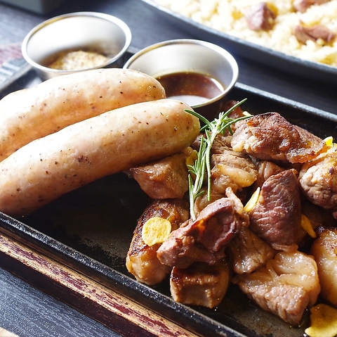 ジューッと焼ける音に、食欲もテンションも上がる!名物の肉料理を中心に、一品やおつまみもこだわりの品ばかり!たくさんのメニューから楽しく選べます!