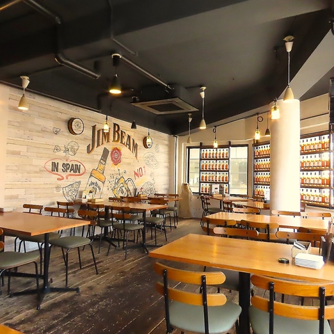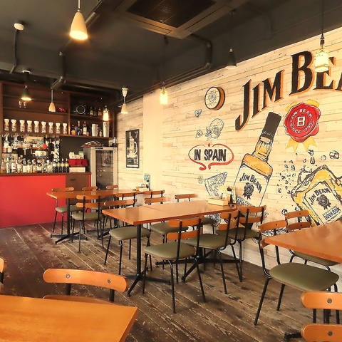 JIM BEAMの壁が可愛い2階のテーブル席◎