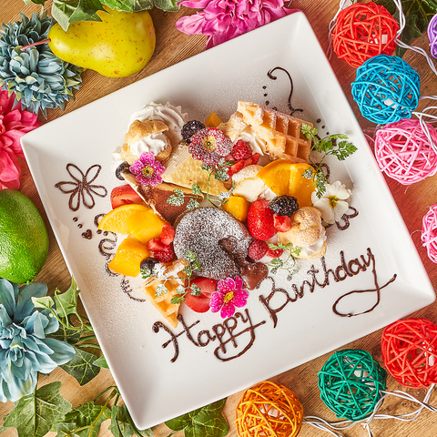 誕生日・記念日にメッセージを添えたデザートプレートで大切な人の記念日をお祝いしましょう♪コースのご予約でメッセージプレートが無料に!完全個室も完備しているので、周りの方も気にせずにお楽しみいただけます★お気軽にお問い合わせください!!